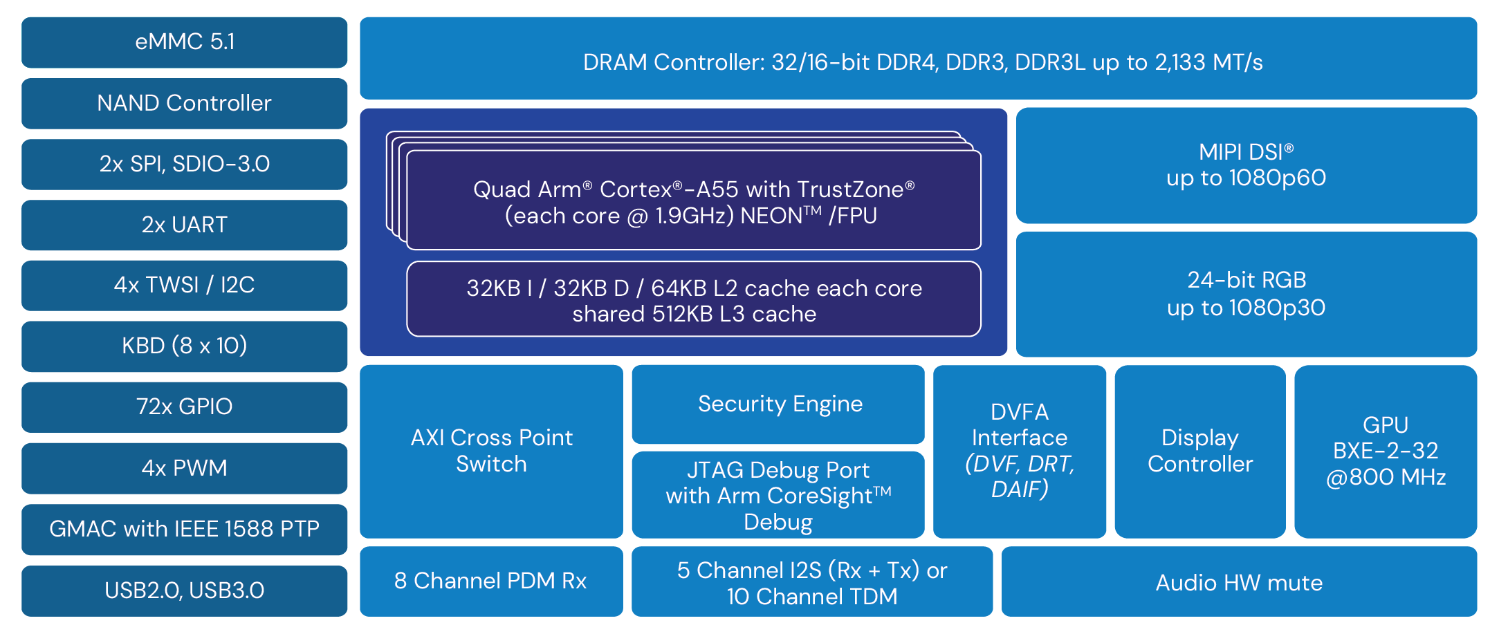 - Quad-core Arm® Cortex®-A55 @ 1.9GHz