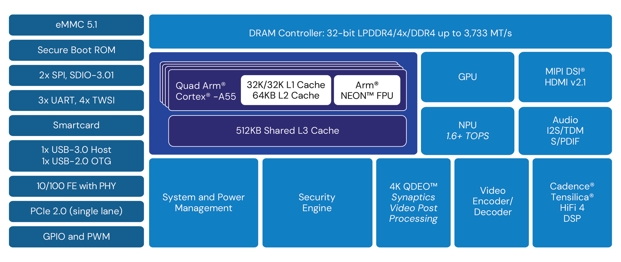 - Quad-core Arm® Cortex®-A55 @ 1.9GHz