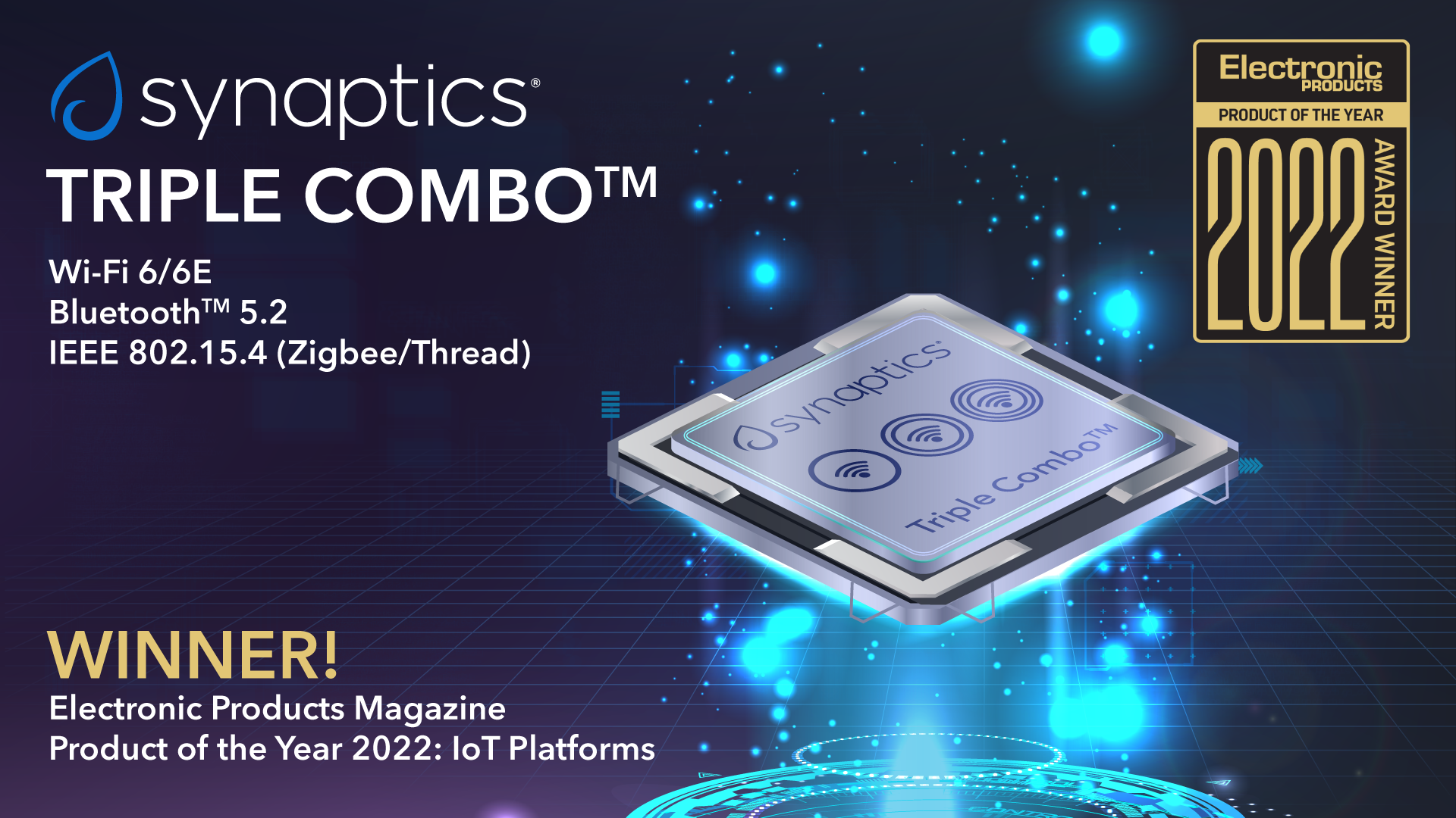 SAN JOSE, Calif., Feb. 01, 2023 – Synaptics® Incorporated (Nasdaq: SYNA) that its Triple Combo™ SoC (SYN4381) was named “Product of the Year for IoT Platforms” by Electronic Products magazine. In its 46th year, Electronic Products’ awards recognize outstanding technology innovations that exhibit any of the following qualities: